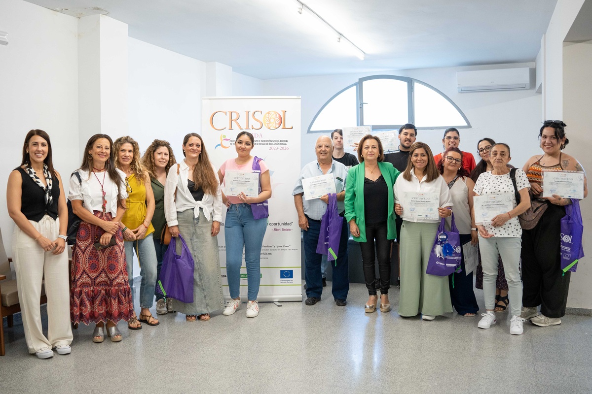 El programa Crisol ha clausurado hoy el curso de “Auxiliar de cocina” en el centro cultural Nueva Ciudad. Las 13 personas que han finalizado esta formación han recibido su certificado: “una jornada que ha puesto el broche final tras 110 horas teórico-practicas, que han permitido crear nuevos profesionales en un sector en el que existe gran demanda en nuestra ciudad” señala la delegada de servicios sociales, Catalina Alarcón.