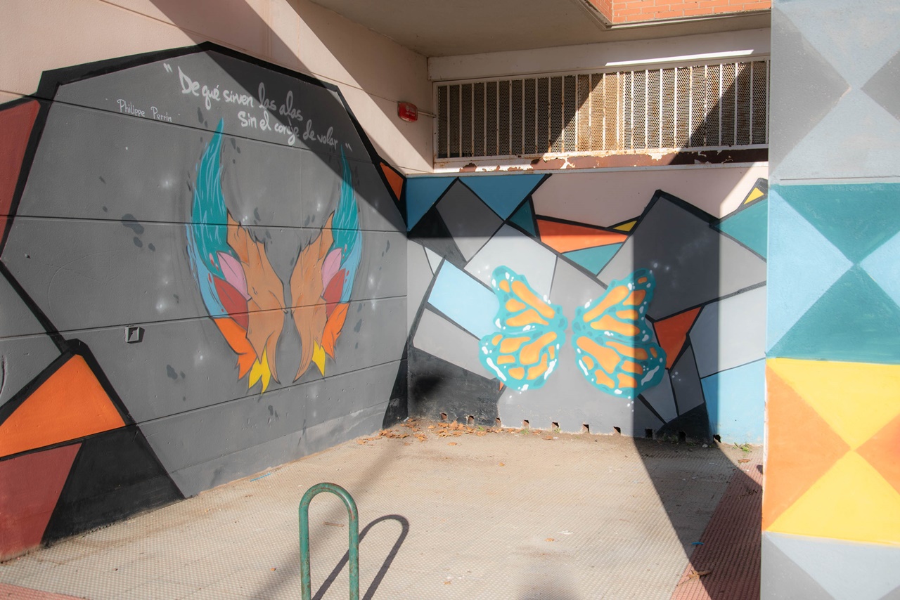 El programa de Crecimiento e Inserción Sociolaboral de Personas en Situación o Riesgo de Exclusión Social 2023-2026 (programa CRISOL) financiado por el Fondo Social Europeo Plus, ha realizado el 5 de Diciembre una pintada artística y talleres creativos en la barriada Juan Canet, que ha contado con la participación de los niños/as del C.E.I.P Antonio Machado, Colegio San Luis y los/as vecinos/as de la barriada, dirigido por el escritor de grafiti Ismael Acedo Maillo “May”.