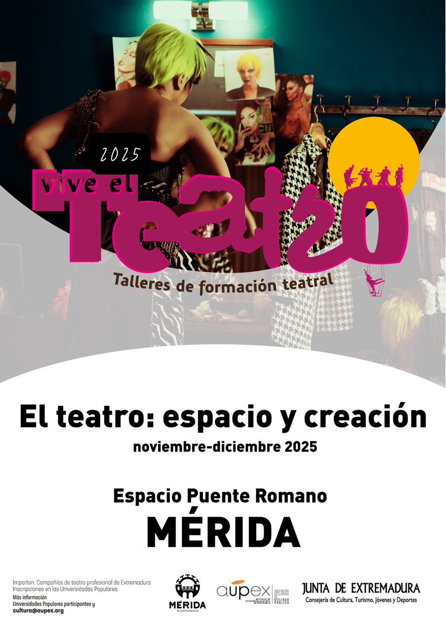 El proyecto Vive el teatro, “se concreta en dos talleres denominados “El teatro, espacio y creación”, de 20 horas cada uno, y dirigidos a mayores de 16 años; correrán a cargo de Verbo Producciones y se realizarán en el Espacio Puente Romano.