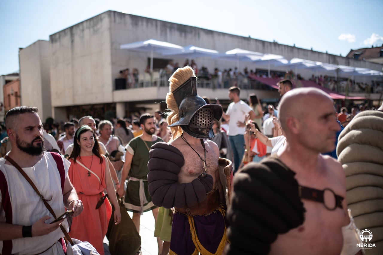 Por la tarde, a las 19 horas, desde la Plaza de la Constitución, partirá la Pompae Gladiatoria previa a la gladiatura y recorrerá Arco de Trajano, Templo de Diana, Sagasta, Jose Ramón Mélida, Plaza Margarita Xirgú, Anfiteatro Romano.