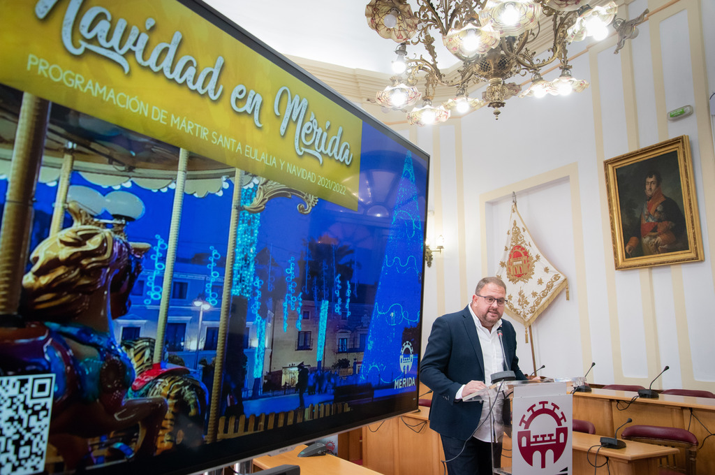 El alcalde, Antonio Rodríguez Osuna, ha presentado esta mañana un avance de la programación que se desarrollará, desde este viernes 26 de noviembre y hasta el 7 de enero, con motivo de la Navidad en Mérida. “Un programa que recupera la esencia de lo que es una filosofía para este Equipo de Gobierno y es que se programen actividades para generar economía, actividad cultural y fomentar la participación ciudadana” ha destacado el alcalde.