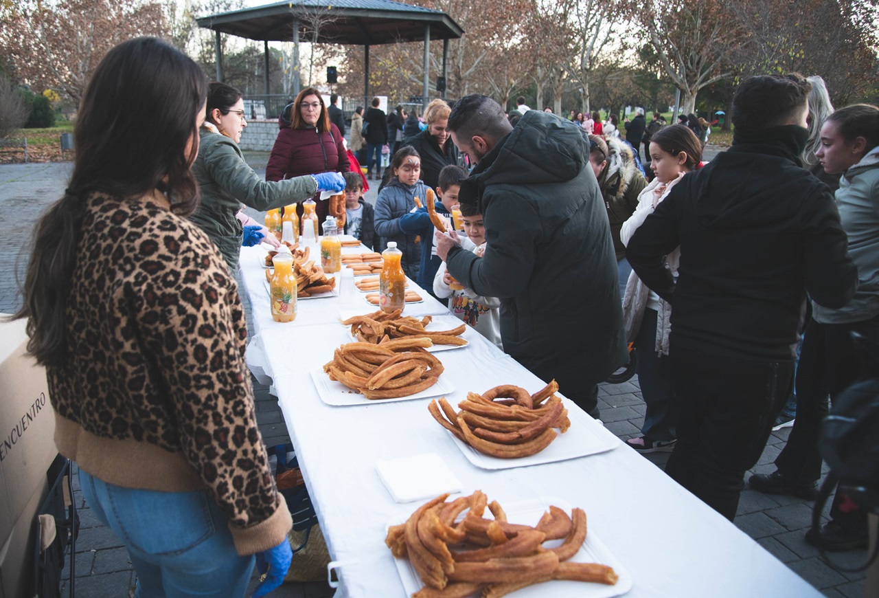 La música estuvo a cargo de Julita Báez y su academia quienes deleitaron a los asistentes con una zambomba navideña, mientras los asistentes degustaban unos churros con chocolate.