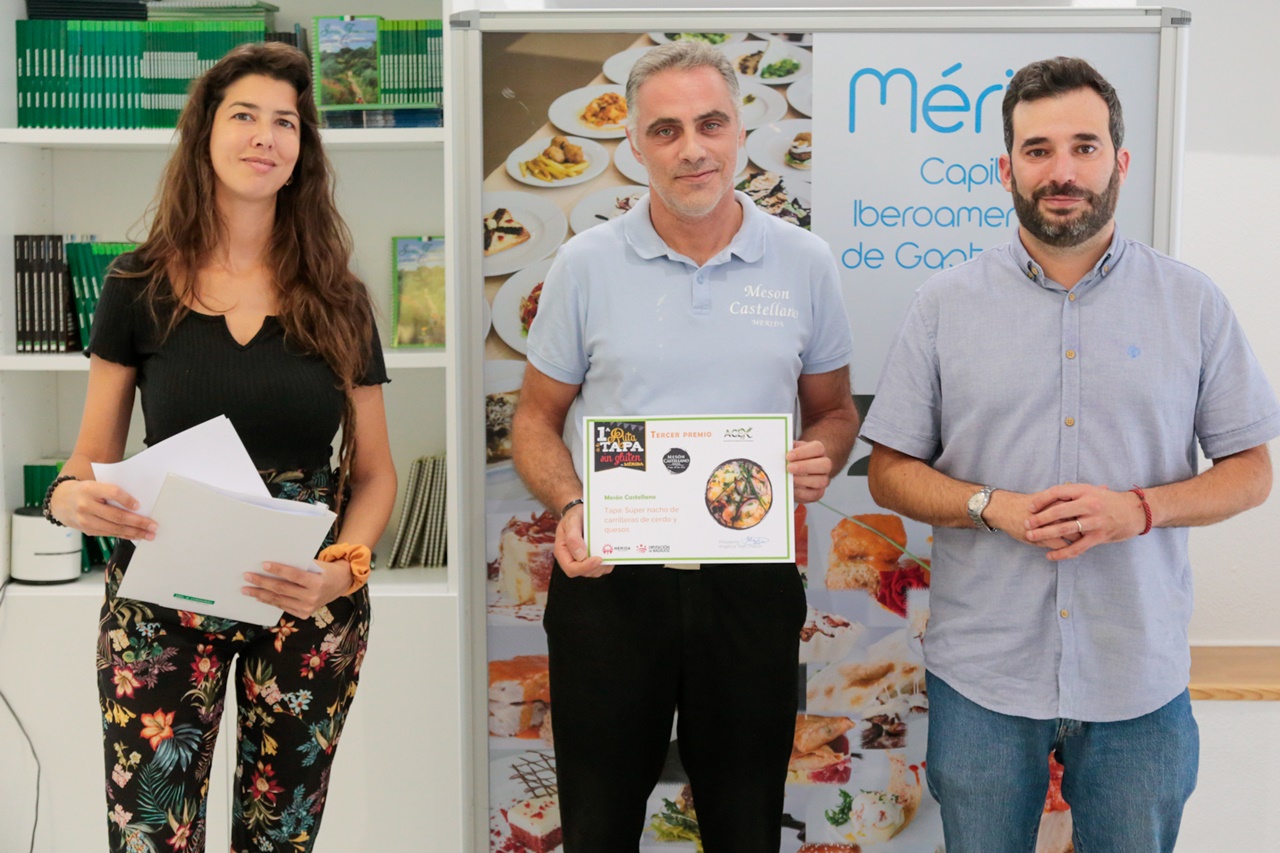 Esta mañana, con la asistencia del delegado de Turismo, Felipe González, se han entregado los premios en la Oficina de Turismo de la Puerta de la Villa a los tres establecimientos ganadores, obteniendo el primer premio Natura Gastroart , por su tapa bocado de galleta maría, el segundo para La Extremeña , por su tapa solomillo suprema, estilo La Extremeña y el tercer premio para Mesón Castellano , por su tapa súper nacho de carrillera de cerdo y quesos.