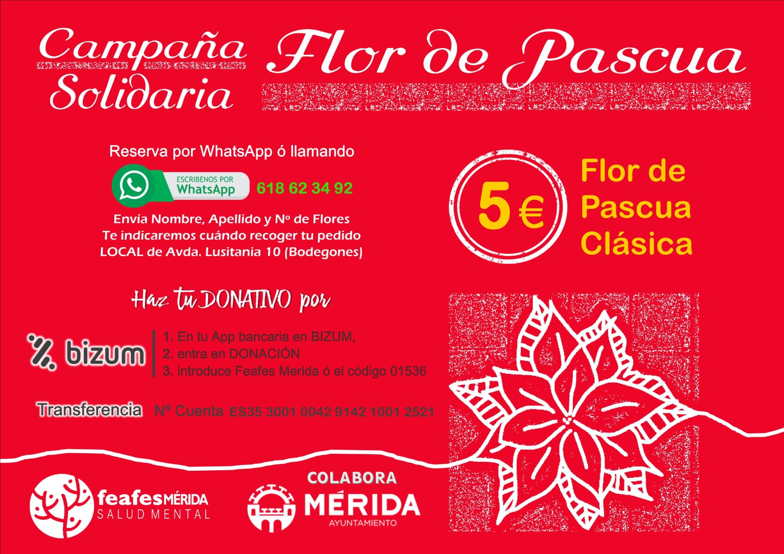 Con la llegada de las fiestas de Navidad, Feafes Salud Mental, en colaboración con el Ayuntamiento de Mérida, pone en marcha una campaña solidaria de venta de flores de Pascua al precio de cinco euros, con el objetivo de recaudar fondos para las actividades y actuaciones que lleva a cabo este colectivo en la ciudad,.
