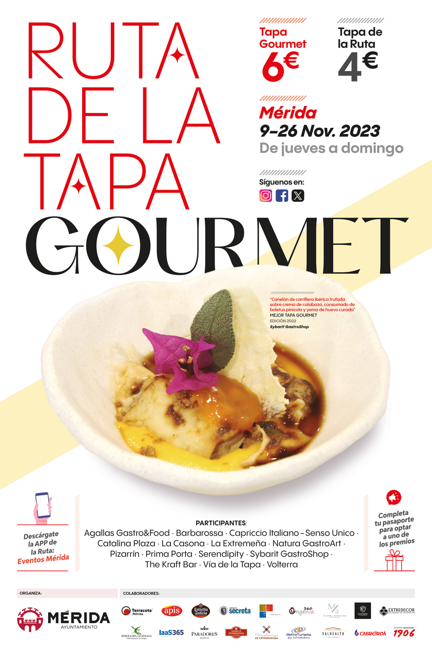 Del 9 al 26 de noviembre de 2023 (de jueves a domingo) se desarrollará una nueva edición de la Ruta de la Tapa Gourmet de Mérida en la que participarán 14 establecimientos de diferentes puntos de la ciudad.