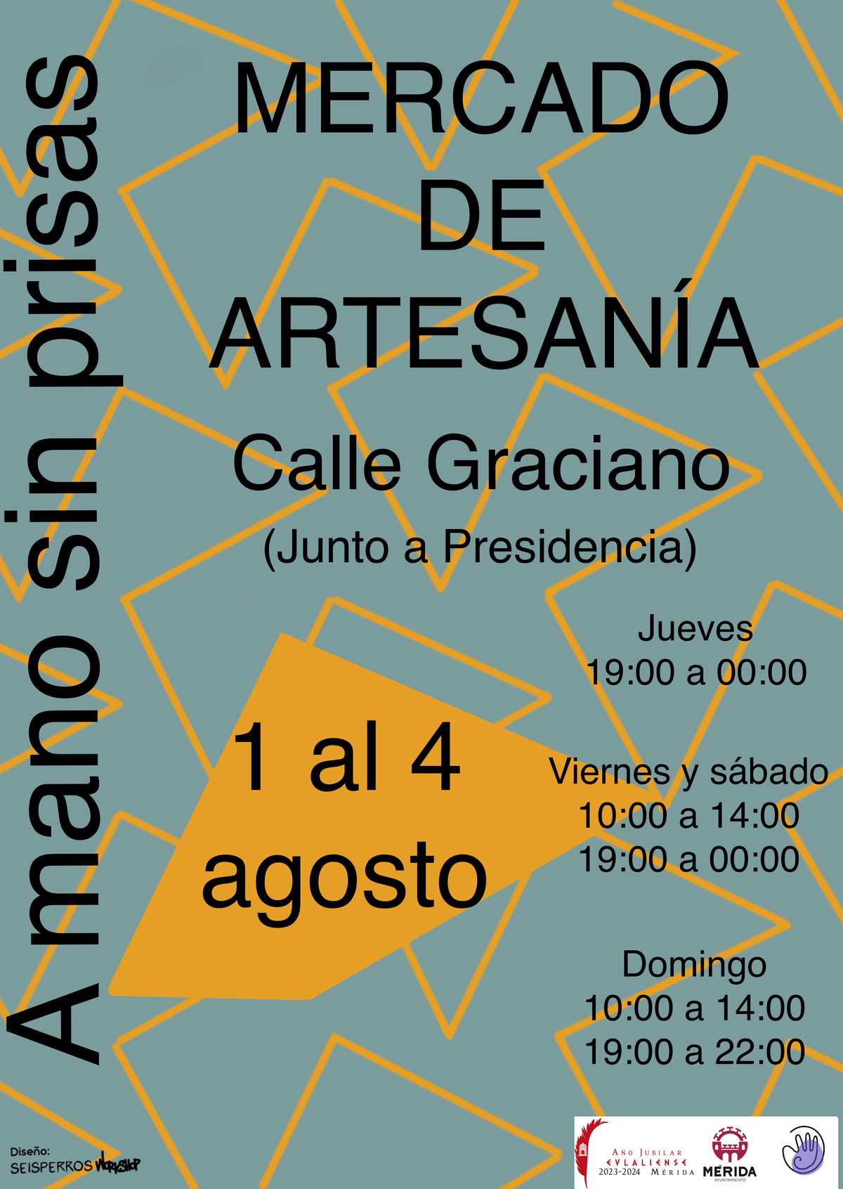 La Asociación de Mujeres Artesanas «A Mano sin Prisas, con la colaboración del Ayuntamiento, organiza el tercer mercado de verano el próximo fin de semana. Se celebrará desde el jueves 1 de agosto hasta el 4 de agosto domingo en la calle Graciano.
