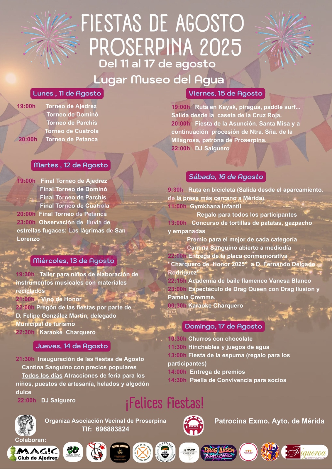 El pregón de la semana cultural correrá a cargo, el jueves, del delegado de Turismo, Felipe González, que dará paso a actuaciones musicales durante el fin de semana, rutas por Proserpina, y un gran punto y final el domingo con una fiesta de la espuma y paella.