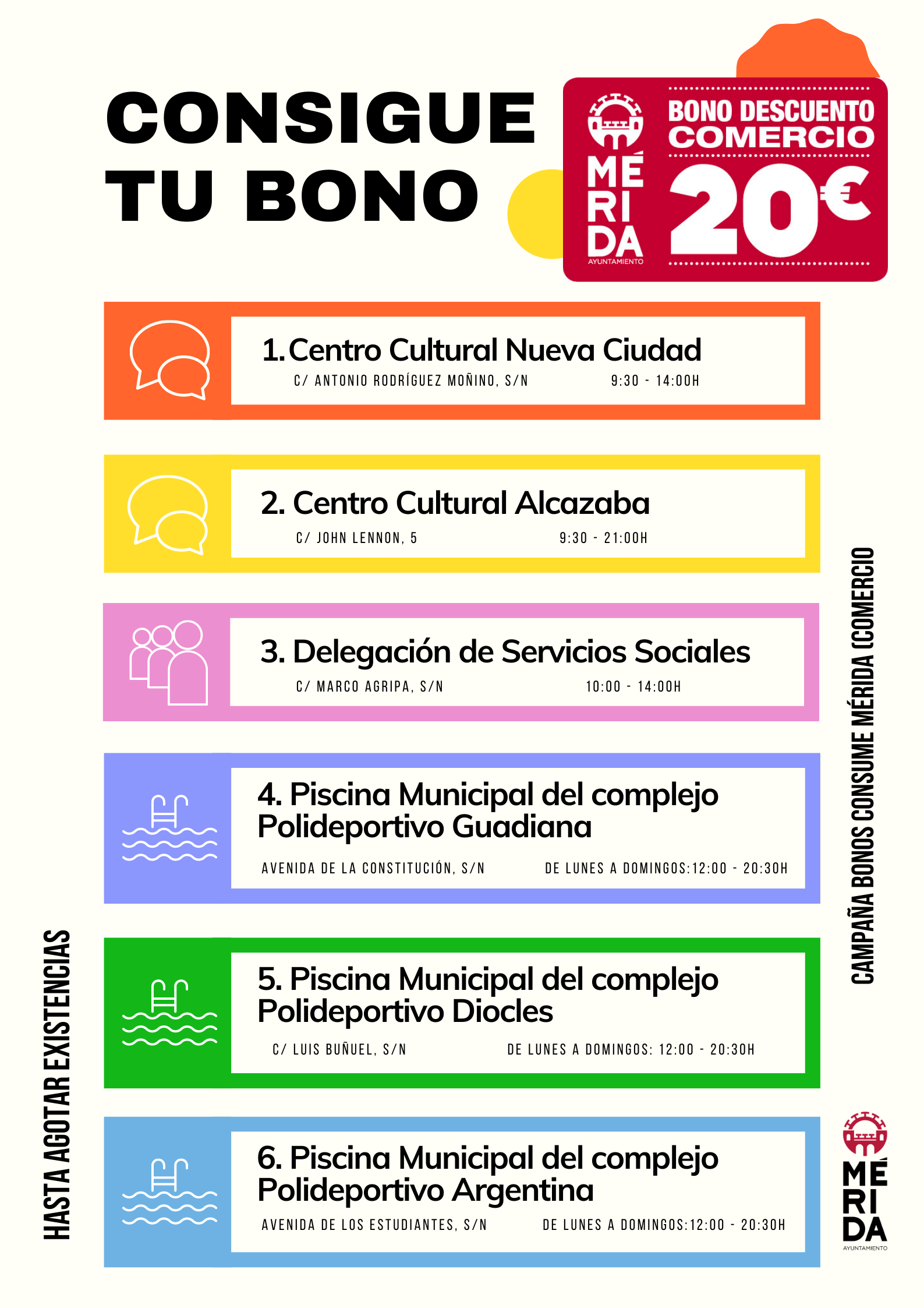 - Los puntos de recogida de bonos se mantienen abiertos en los distintos centros municipales hasta agotar existencias.