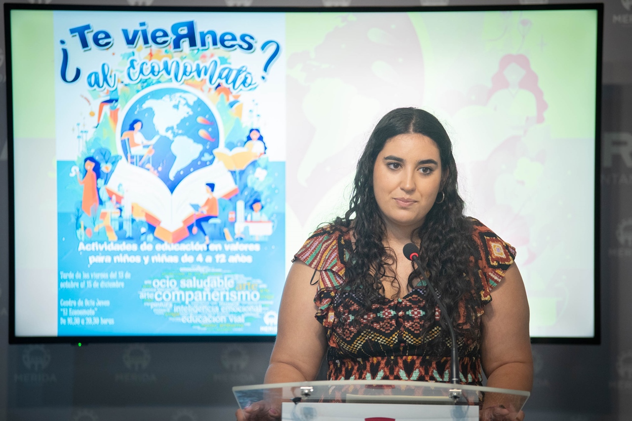La delegada de Juventud, Laura Iglesias, ha presentado un nuevo proyecto que pretende educar en valores a los niños emeritenses y que se llevará a cabo todos los viernes del trimestre, desde el 13 de octubre al 15 de diciembre, bajo el título “¿Te vieRnes al Economato?”.