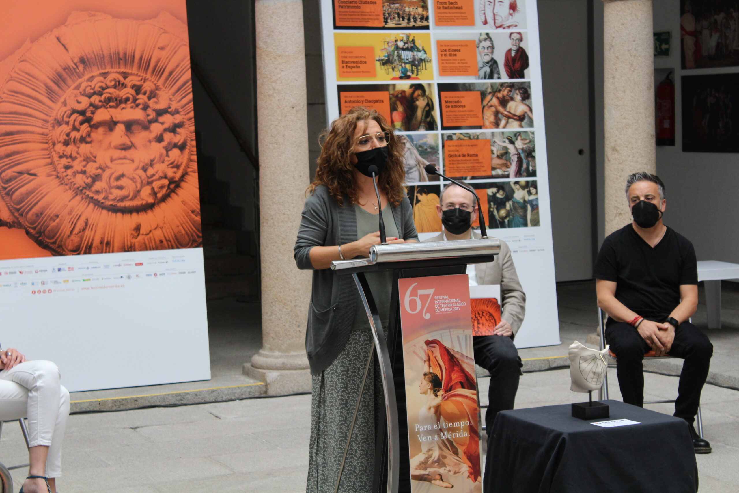 La nueva escultura presentada por Terracota y el Festival se denomina Tempus, y forma parte de colección de figuras Ars Fatum “en la que cada año se añade una nueva pieza”, tal y como explica Jesús Cimarro, director del Festival de Teatro Clásico de Mérida.