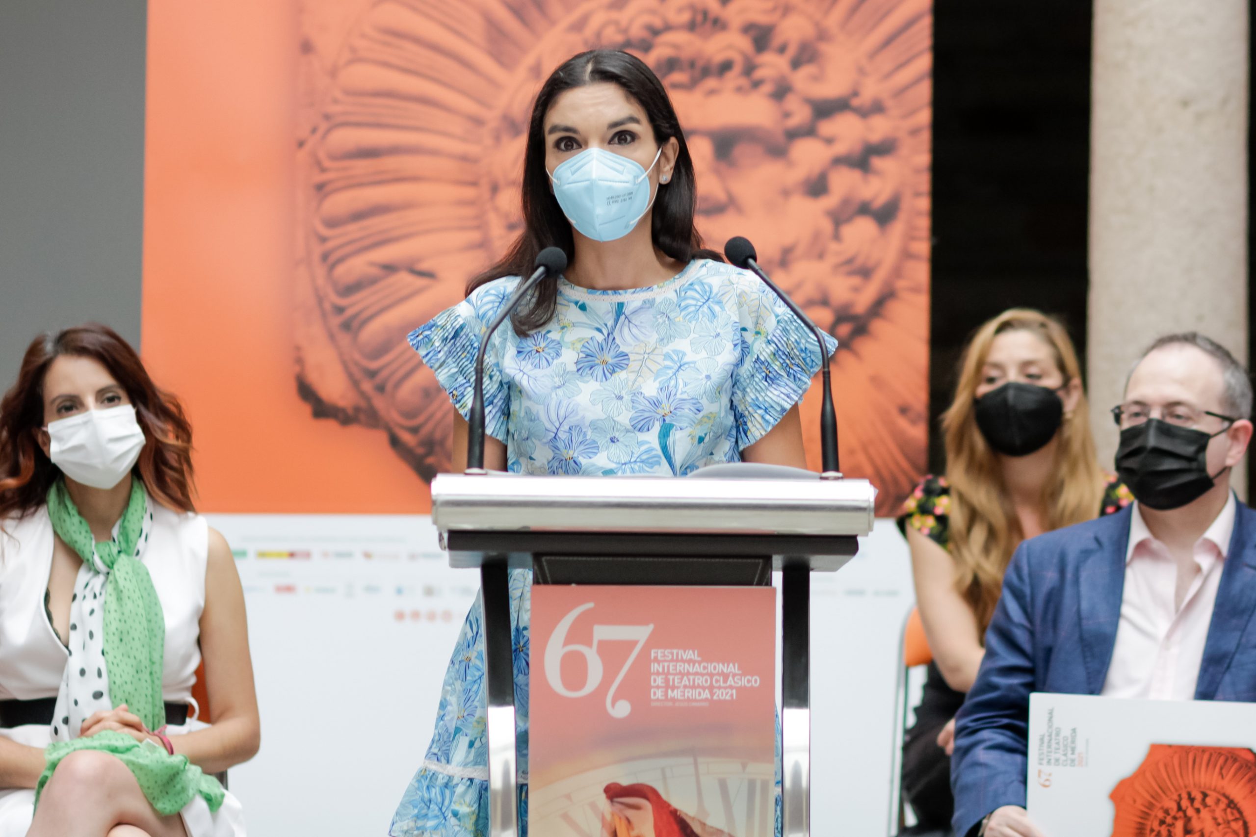 La delegada de Turismo, Pilar Amor, ha asistido a la presentación de la obra “Antonio y Cleopatra” que se podrá ver en el Teatro Romano desde el jueves 8 al domingo 11 de julio, siendo la segunda obra de la 67ª edición del Festival de Teatro Clásico de Mérida.