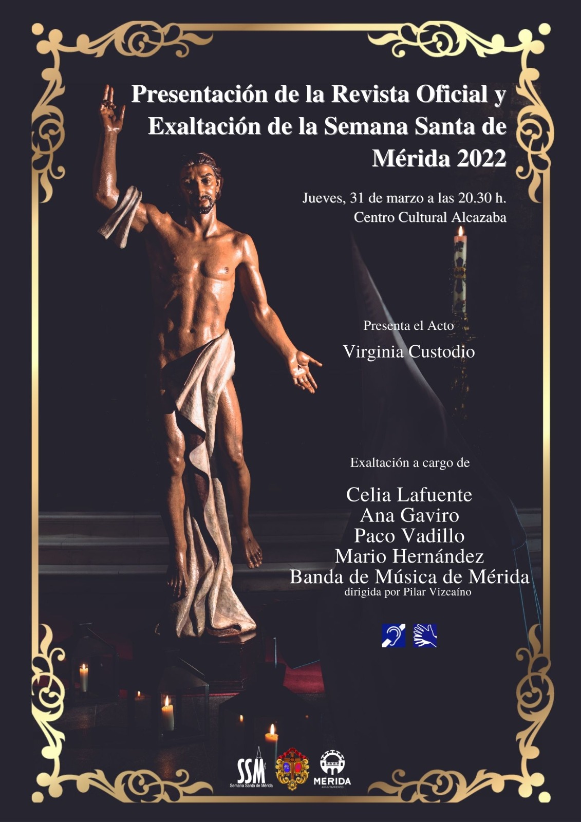 Posteriormente, los cronistas de la web de la Semana Santa, Paco Vadillo, Ana Gaviro, Celia Lafuente y Mario Hernández, comenzarán con la exaltación a la Semana Santa con una serie de intervenciones que se alternarán con la música en directo de la banda, así como distintas proyecciones en una pantalla de gran formato.