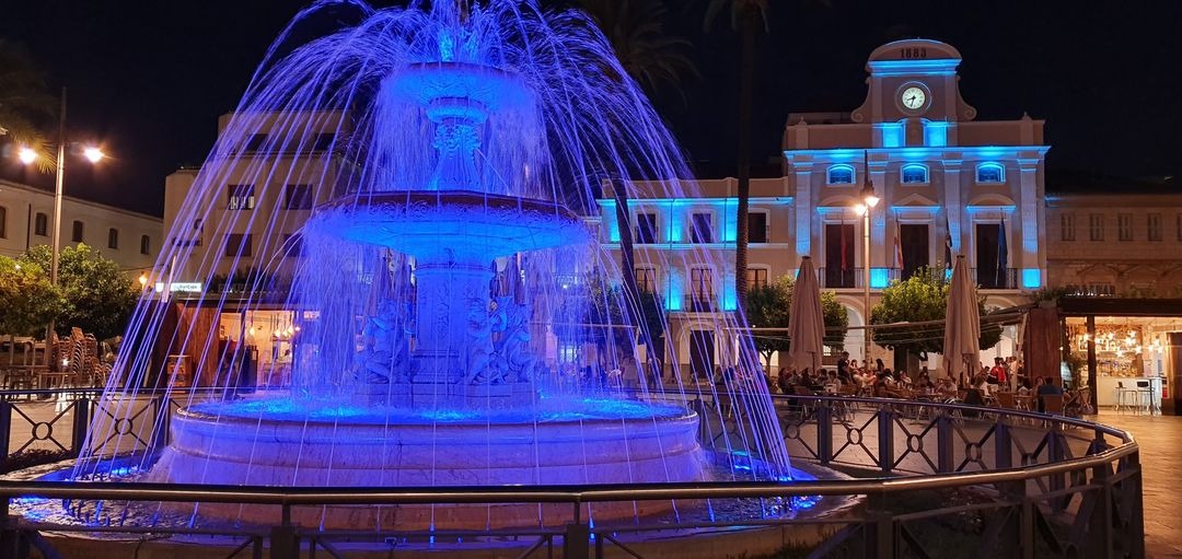 La fachada del Ayuntamiento, la fuente de la plaza y los monumentos de la ciudad se iluminarán el domingo en color azul y púrpura con motivo de la campaña mundial Light It Up 4 HD, es decir, Ilumínate por Huntington, solicitado por parte de la Asociación Extremeña de Enfermos de Huntington (AEXEH).