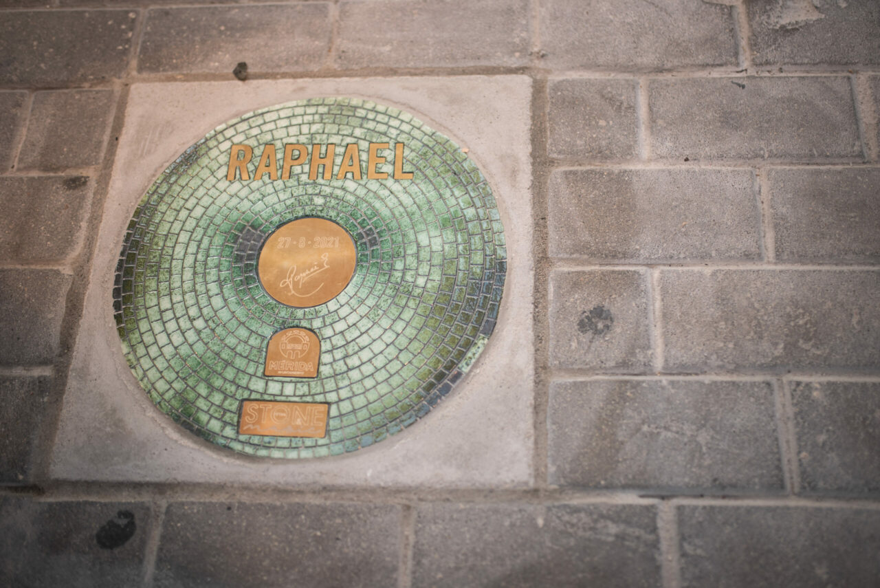 Fernández Vara fue el primero en destapar el nombre de este paseo de la música y destacó que “es una gran idea y en unos años se puede convertir en un atractivo turístico para Mérida”. Posteriormente fue Raphael quien descubrió su placa, un disco de vinilo hecho en piedra, por la empresa emeritense Terracota, en el que dentro podemos encontrar el nombre del artista, con su firma y los logotipos del Ayuntamiento de Mérida y del Stone & Music Festival.