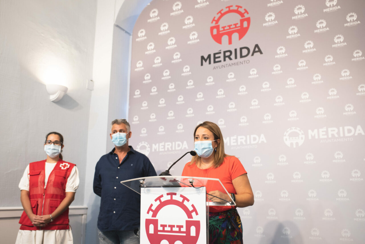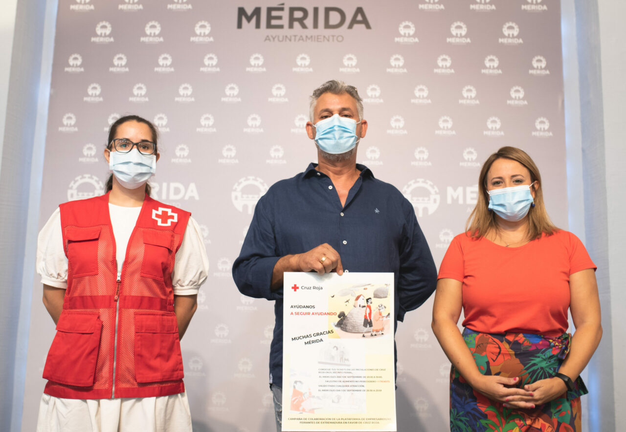 La delegada de Festejos, Ana Aragoneses, ha presentado una iniciativa de recogida de alimentos para la Feria de Mérida con una campaña de colaboración con la Plataforma de Feriantes de Extremadura y Cruz Roja. En el acto estuvieron también Francisco Vega, en representación de la Plataforma de Feriantes de Extremadura y Yolanda González de Cruz Roja.