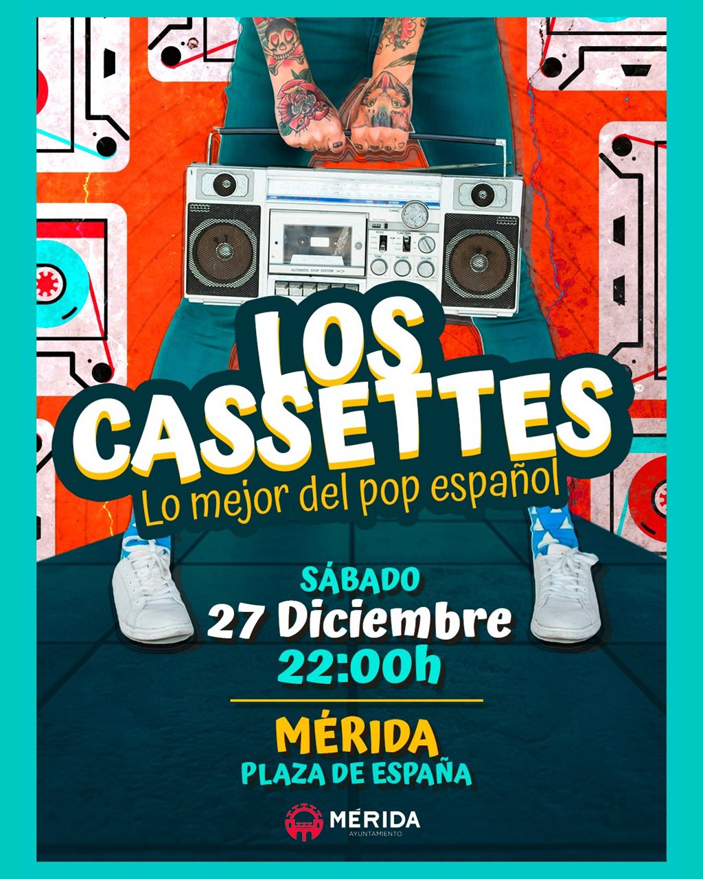 A las 22:00 horas será el turno de Los Cassettes, un grupo originario de Cáceres dedicado a interpretar versiones de temas del pop y rock en castellano de las décadas de los 80 y 90. Su repertorio incluye canciones de artistas como La Frontera, Tam Tam Go, Celtas Cortos, Antonio Vega y Danza Invisible. La banda está formada por Manuel Reyes (voz y guitarra), Alberto Barrero (guitarra eléctrica y coros), Rubén Rubio (bajo eléctrico) y Antonio Pintor (batería).