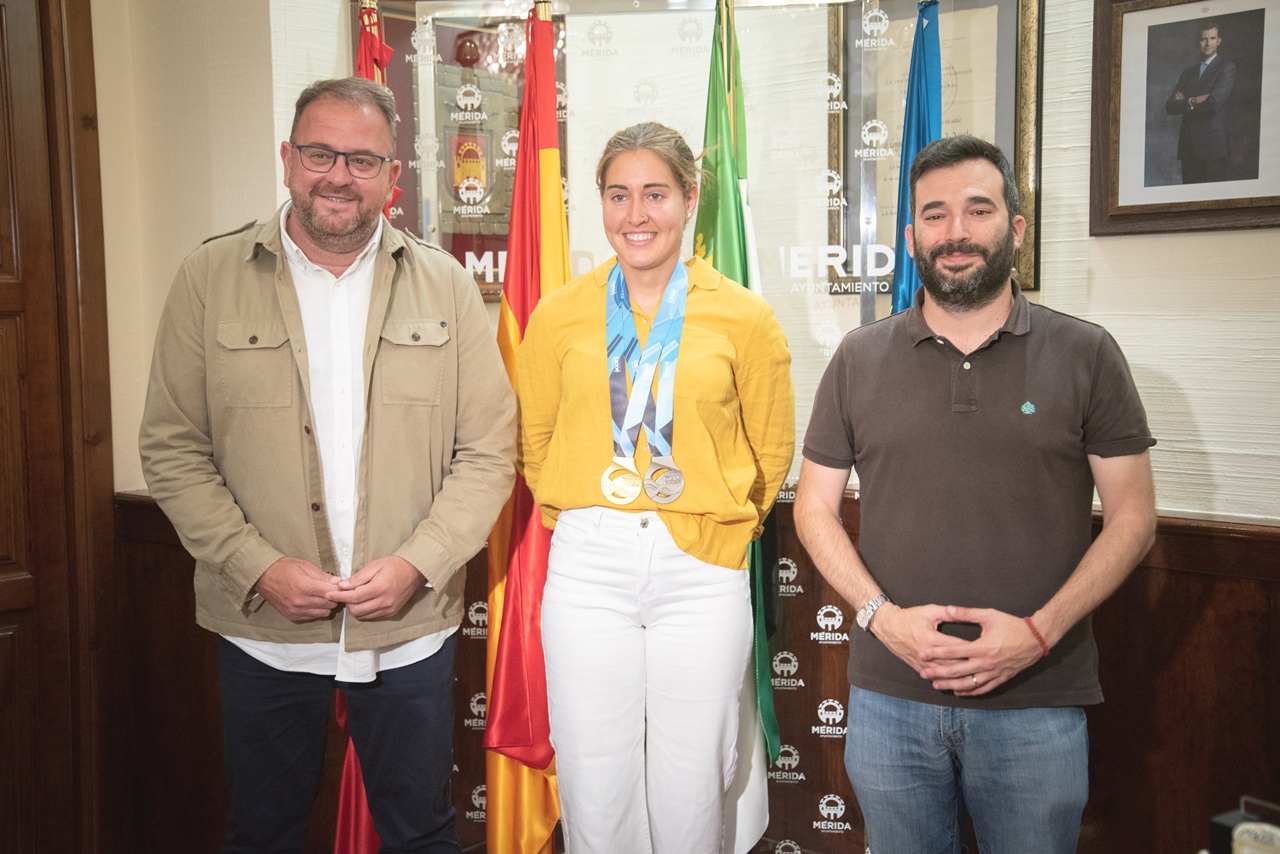 - La piragüista emeritense ha sido recibida por el alcalde, Antonio Rodríguez Osuna, a quien le ha mostrado las dos medallas, plata y oro, obtenidas en el último campeonato mundial