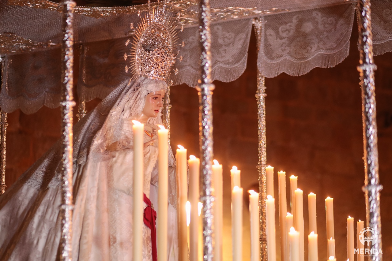 Mientras tanto, la Cofradía del Nazareno mantiene su apuesta por integrar de forma más destacada el patrimonio monumental en su recorrido, transitando por el entorno del Templo de Diana tras el tradicional encuentro que se celebra en la Puerta de la Villa, lo que permitirá ofrecer una de las estampas más espectaculares de la Semana Santa emeritense, con los pasos avanzando entre las columnas del templo romano iluminado.