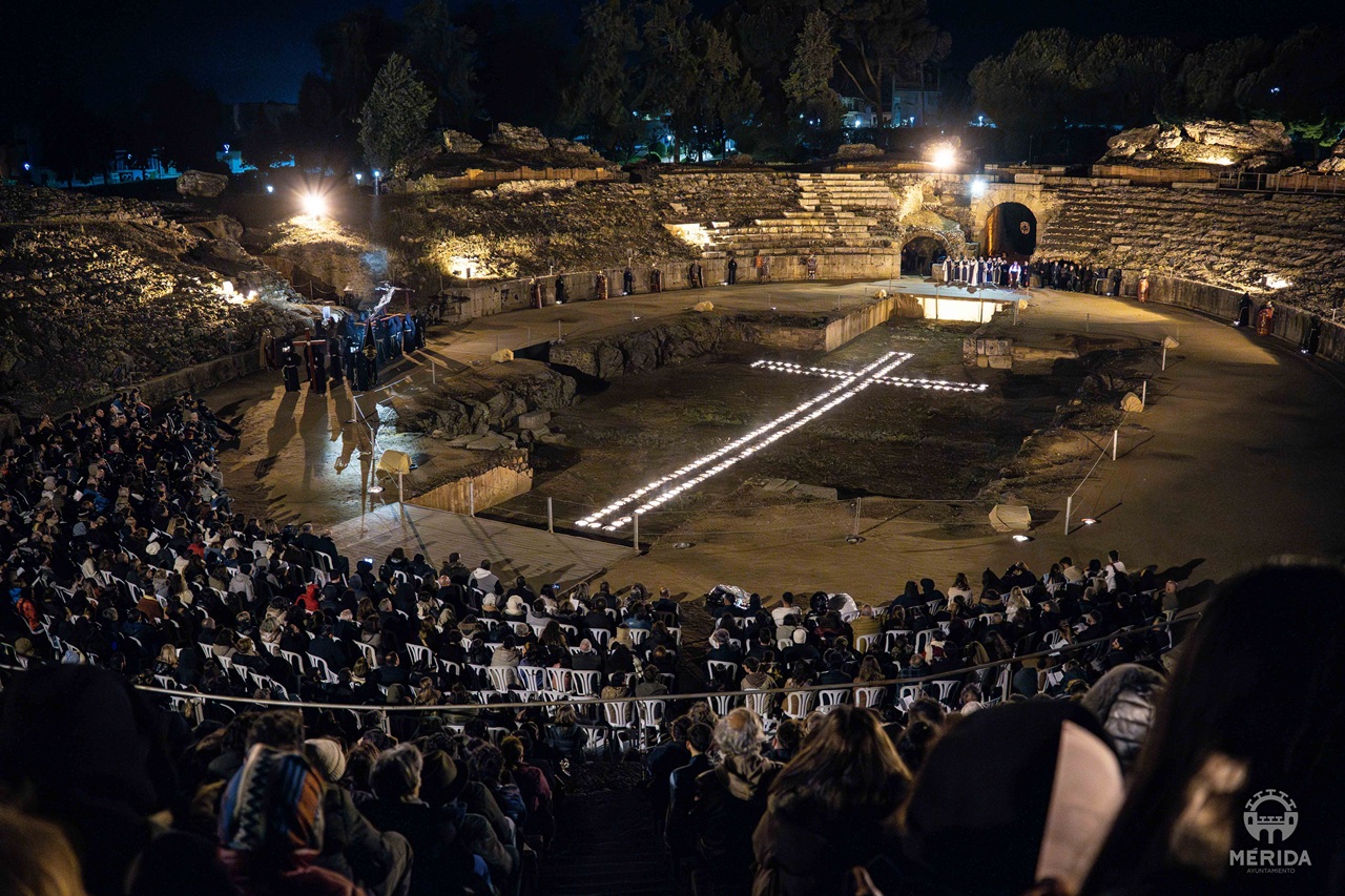 Otra de las novedades organizativas llegará en el tradicional Vía Crucis de la madrugada del Viernes al Sábado Santo, que se celebra en el Anfiteatro Romano de Mérida, uno de los actos más sobrecogedores de la Semana Santa local. Para facilitar la organización y el acceso del público, la recogida de entradas gratuitas para las gradas se realizará a las 00:00 horas del Viernes Santo en la puerta del Teatro Romano, sustituyendo así el sistema anterior que se realizaba durante la mañana.