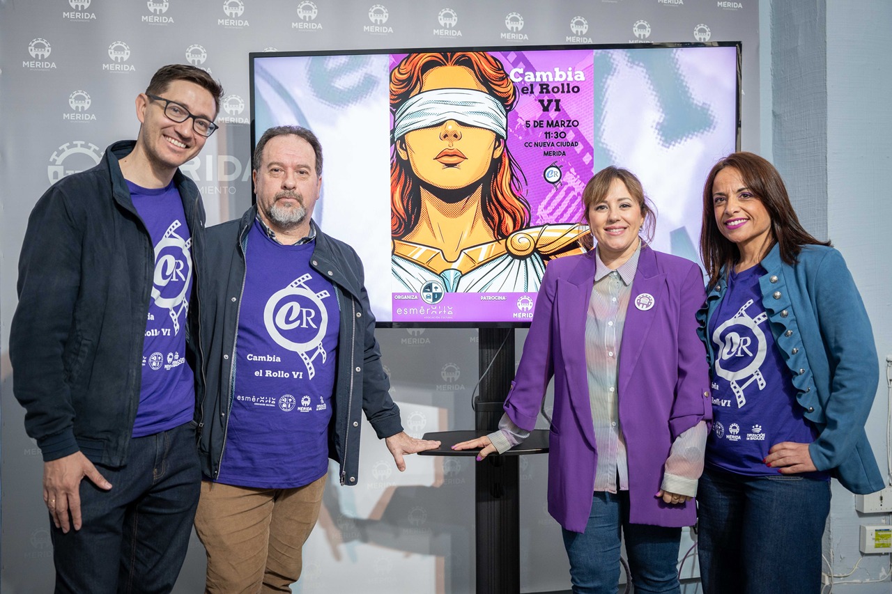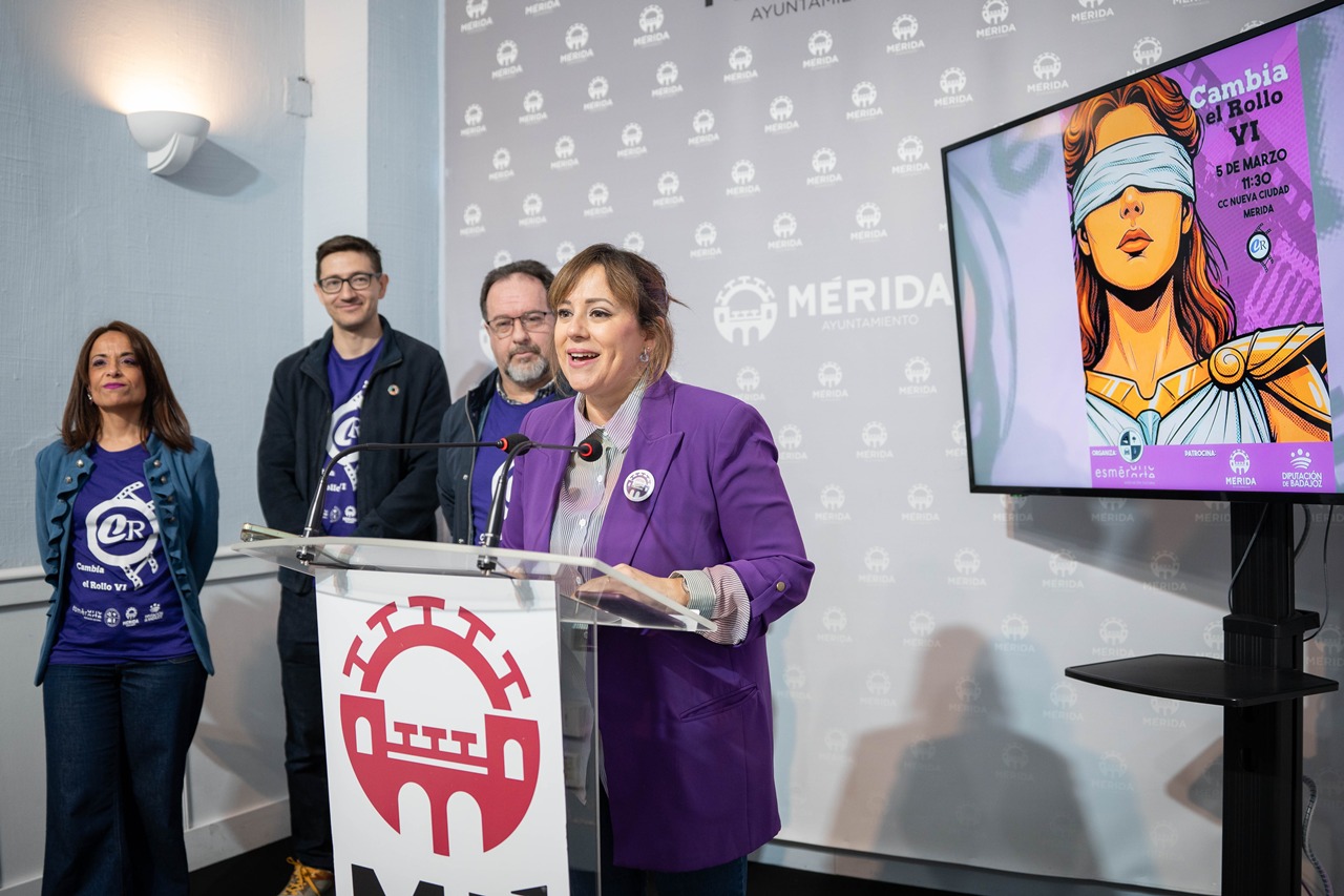 La delegada de Igualdad, Ana Aragoneses, ha presentado este miércoles la sexta edición del certamen audiovisual “Cambia el rollo”, que en esta ocasión se desarrolla bajo el lema “La juventud proyecta igualdad. Imágenes que cuestionan, voces que transforman”. El evento, organizado por la Asociación Cultural EsMérArte, en colaboración con el Ayuntamiento de Mérida y la Diputación de Badajoz, cuenta con la participación del alumnado del I.E.S. Extremadura de la capital extremeña.