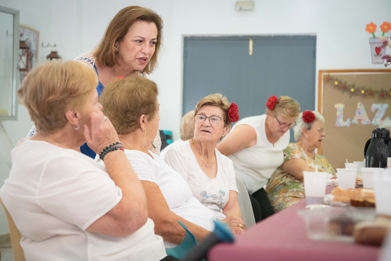 La delegada de Mayores, Catalina Alarcón, ha asistido esta mañana al desayuno y las actividades de feria que el programa “Lazos” ha desarrollado en la Asociación de vecinos de Nueva Ciudad.