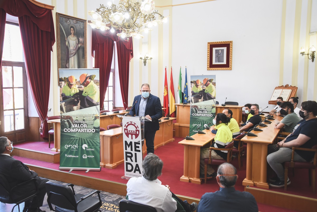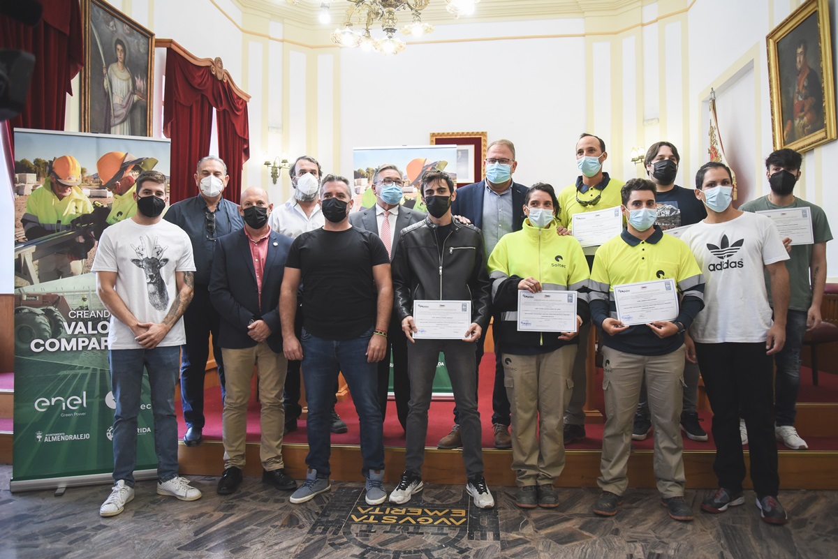 Los alcaldes de Mérida y Almendralejo, Antonio Rodríguez Osuna y José María Ramírez, han hecho entrega hoy en el Salón de Pleno de los diplomas del curso de formación para el montaje de seguidores y paneles solares promovido por Endesa, a través de su línea de negocio de renovables Enel Green Power.
