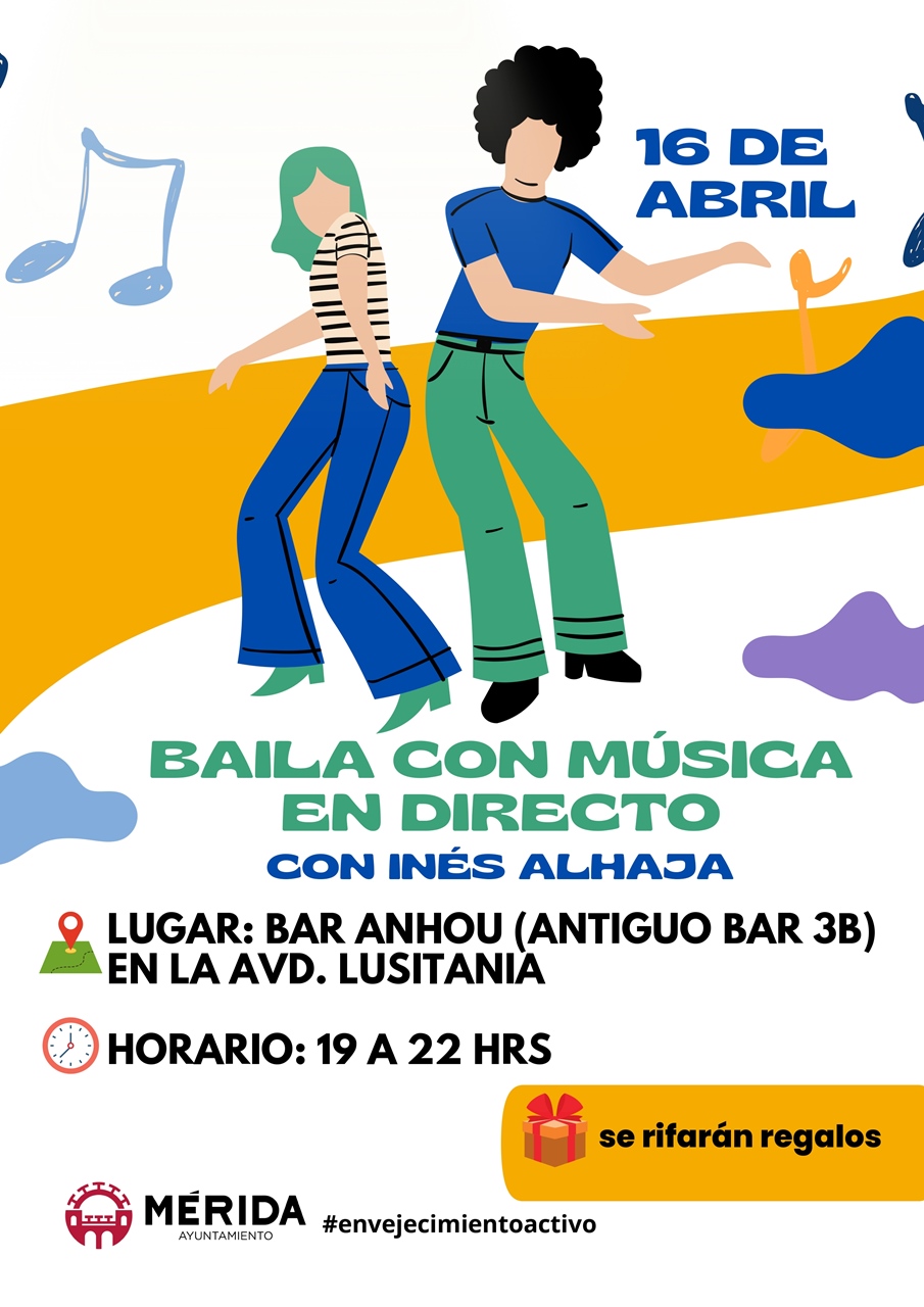 La delegación de mayores retoma este domingo, 16 de abril, el programa de bailes en el Bar Anhou (antiguo Bar 3B) en la Avenida Lusitania, desde las 19 a las 22 horas, con entrada gratuita y música en directo a cargo de Inés Alhaja.