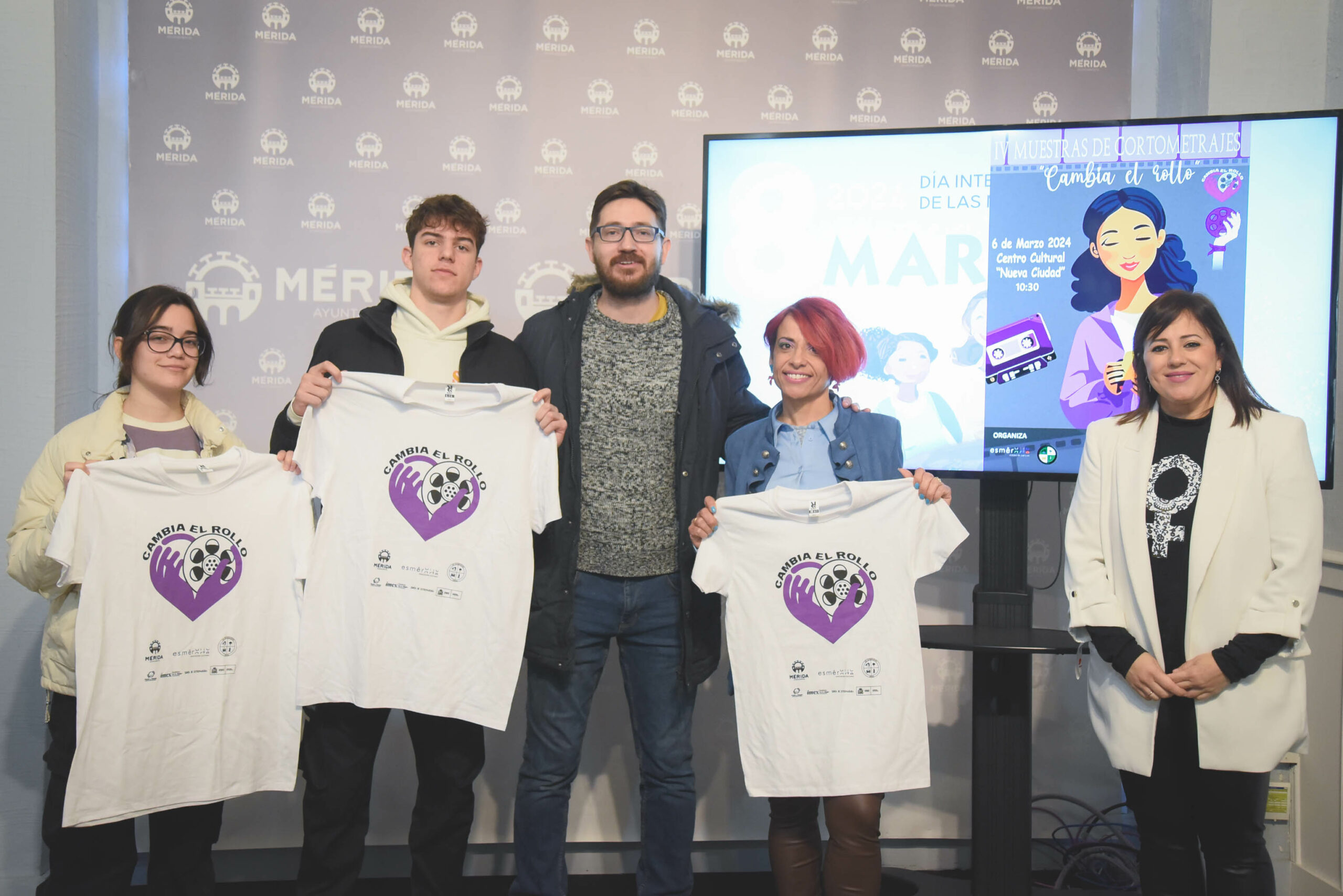 La cuarta edición de la Muestra Audiovisual “Cambia el rollo”, organizada por la Asociación Esmerarte y el Ciclo de Realización Audiovisual y Espectáculo del I.E.S Extremadura de Mérida, ha sido presentada por la delegada de Igualdad de oportunidades entre hombres y mujeres, Ana Aragoneses, siendo una más de las actividades que tienen lugar esta semana con motivo del 8M.