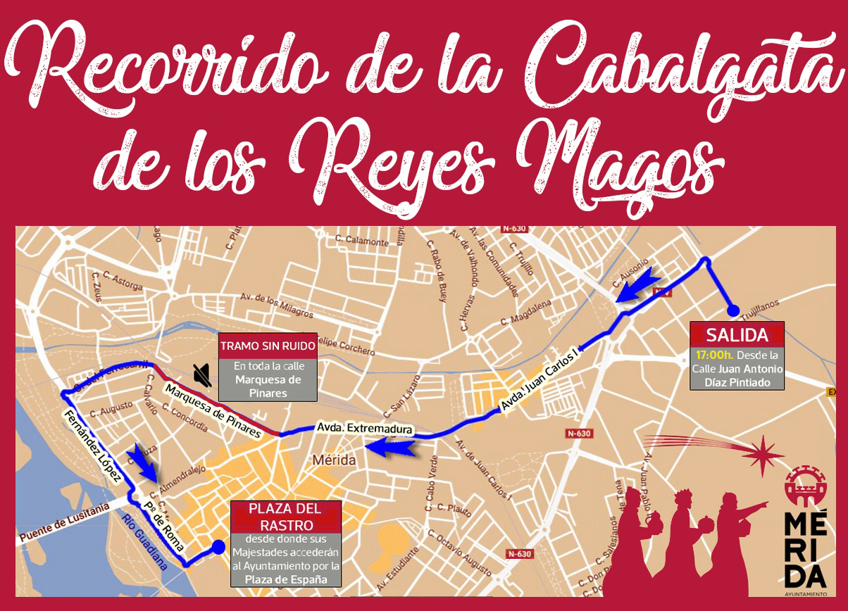 La Policía Local, además, cortará el Puente Lusitania, tanto para acceder como salir del casco urbano, una vez se acerque la cabalgata a ese punto “recomendando utilizar el Puente Fernández Casado y Reina Sofía donde se hará una circunvalación por Juan Pablo II, para enlazar con Avda. Felipe VI, Antigua N-V y viceversa, Felipe VI, Antigua N-V, Juan Pablo II, o también utilizar el Puente de la Autovía para trasladarse de un lugar a otro, de la ciudad, según convenga”, explica González con la intención que los conductores conozcan las vías alternativas al paso de la Cabalgata.