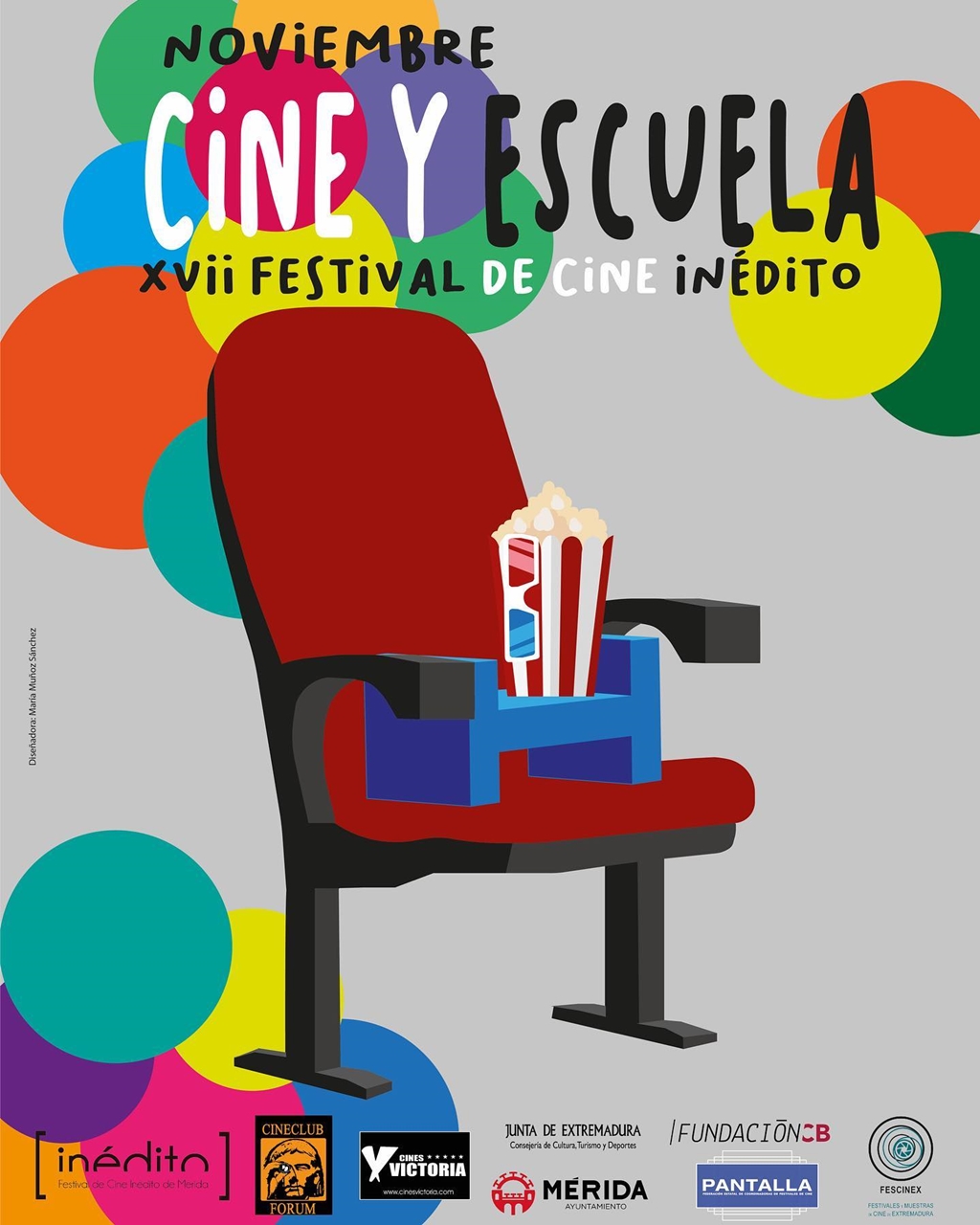 La autora del cartel de Cine y Escuela es María Muñoz, natural de Almaraz de 23 años y estudiante del Grado de Diseño Gráfico en la Escuela de Arte y Superior de Diseño de Mérida. Reconoció que fue una “oportunidad” poder llevar a cabo el diseño de los carteles de la sección Cine y Escuela, y se sintió “abrumada y emocionada”, ya que era la primera oportunidad de tener contacto real con un encargo “tan importante para Mérida”.