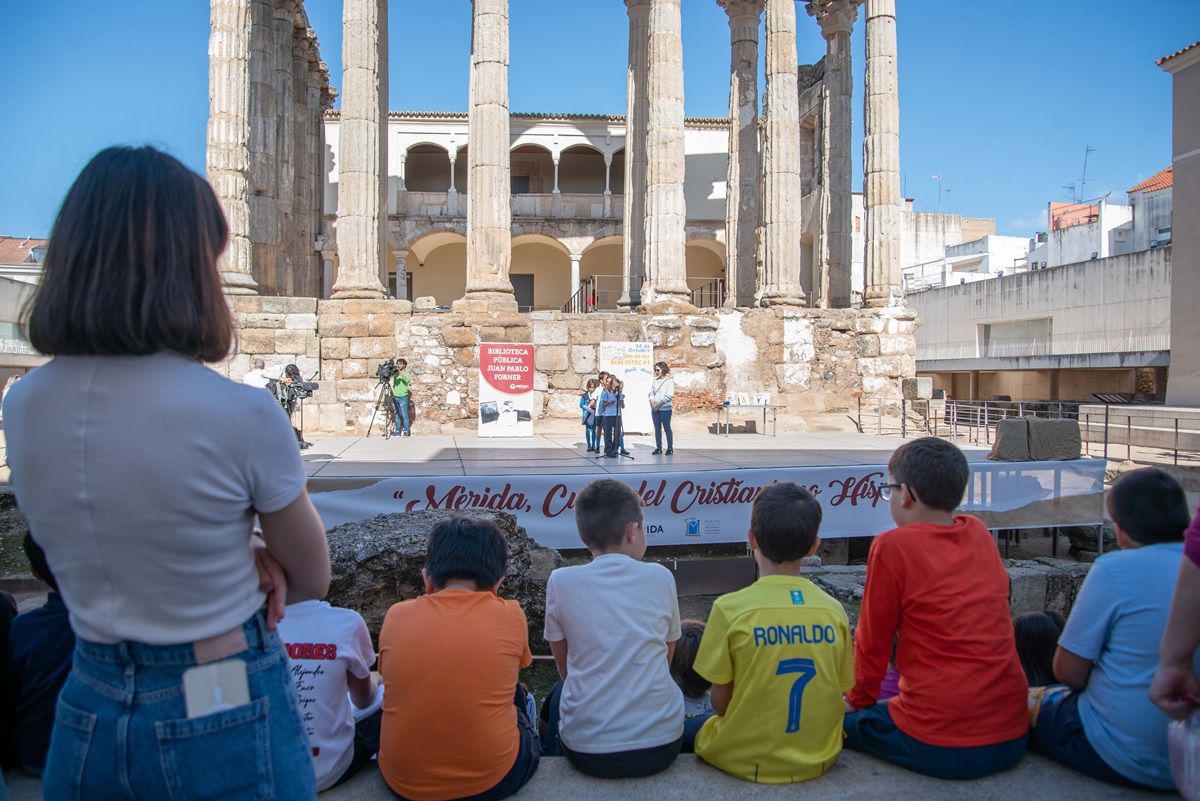 En el Día Internacional de Bibliotecas más de un centenar de escolares de diferentes centros educativos han participado en un cuentacuentos en el Templo de Diana. Una actividad organizada por la Biblioteca Municipal Juan Pablo Forner “para hablar de libros y fomentar la lectura que es uno de los objetivos más importantes de las bibliotecas públicas” en palabras del delegado de cultura, Antonio Vélez.