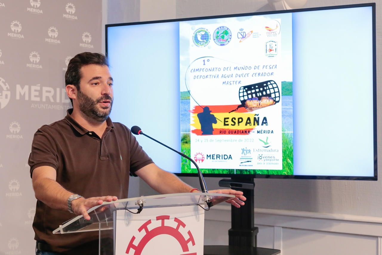 El delegado de Deportes, Felipe González, ha presentado esta mañana el I Campeonato del mundo de Pesca Deportiva en agua dulce Cebador Máster que se celebra este fin de semana en el río Guadiana a su paso por Mérida, en la zona denominada “De los espárragos”.