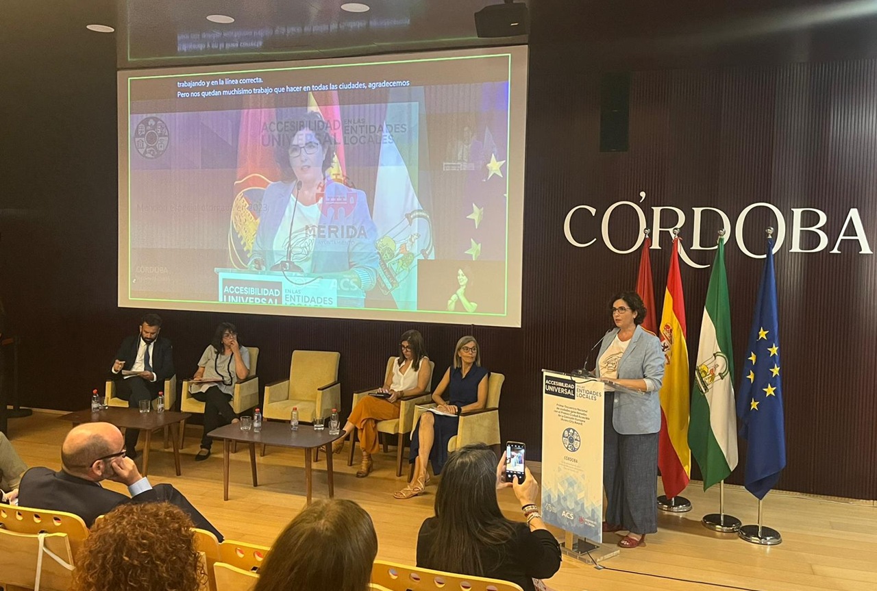 La delegada ha señalado que esta jornada, en la que participan un total de 18 ciudades es “una gran oportunidad para aprender y para poder contar al resto de ciudades lo que estamos haciendo en Mérida y que nos ha llevado a ser reconocidos con la mención especial de Ciudad Europea Accesible, entre otros galardones, como ya sabemos, con el Premio Reina Letizia o con el Premio Solidario de la ONCE”.