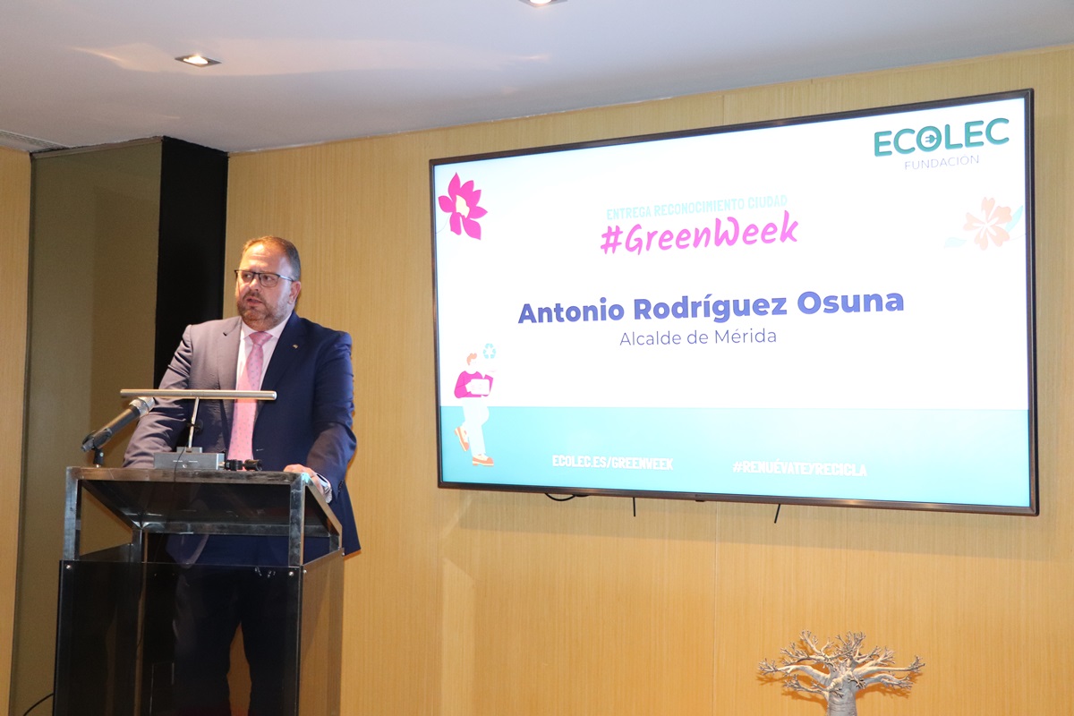 Fundación Ecolec, organización sin ánimo de lucro que centra su actividad en el reciclaje de aparatos eléctricos y electrónicos (RAEE), ha otorgado por primera vez el reconocimiento Ciudad #GreenWeek a Mérida por su implicación en las dos últimas ediciones de la iniciativa #GreenWeek.