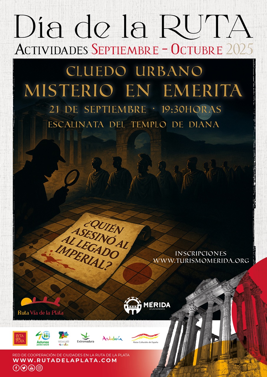 Con motivo de los actos conmemorativos del Día de la Ruta de la Plata, el próximo 21 de septiembre, las calles del centro histórico de Mérida se transformarán en el tablero de un gran juego de investigación con la llegada de “Experiencia inmersiva: Cluedo urbano teatral sobre los misterios de Emerita Augusta”, una innovadora propuesta cultural donde el público se convierte en detective y protagonista de una historia ambientada en la época romana.