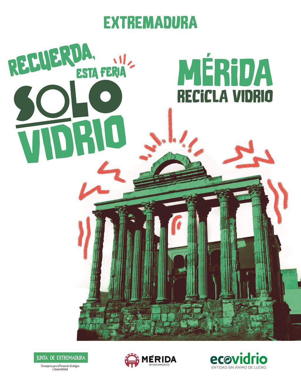 El Ayuntamiento de Mérida , junto a Ecovidrio, entidad sin ánimo de lucro encargada de la gestión del reciclado de residuos de envases de vidrio en España, el Ayuntamiento de Mérida y la Junta de Extremadura han puesto en marcha la campaña de concienciación intensiva “Mérida recicla vidrio” para impulsar la recogida selectiva de envases de vidrio durante la Feria y las Fiestas.