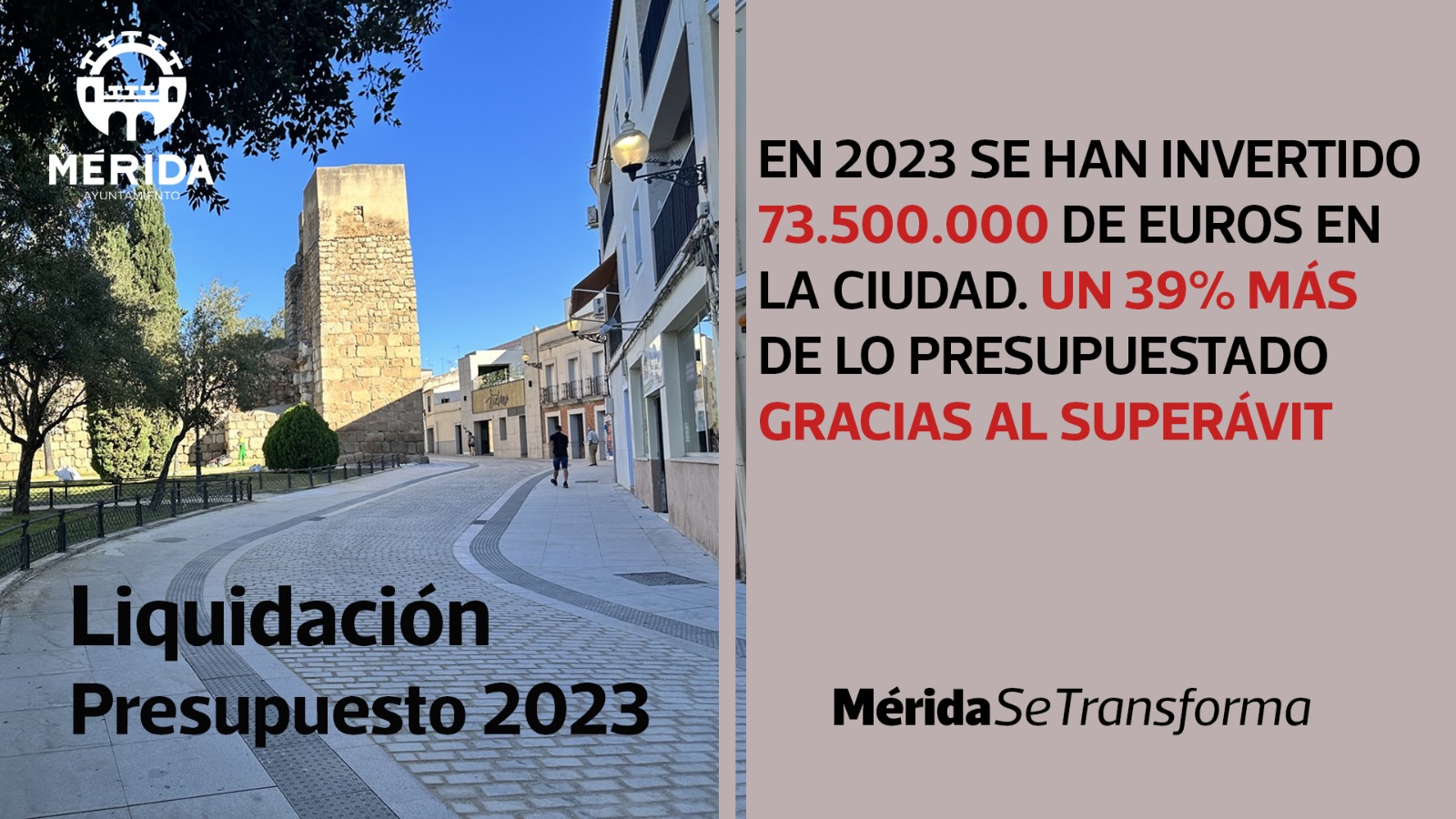 El alcalde ha anunciado que en breve se especificará y determinará el destino y los proyectos a ejecutar gracias al superávit económico. Proyectos que “seguirán haciendo real la transformación de la ciudad y que responden a un proyecto claro que tenemos con Mérida”.