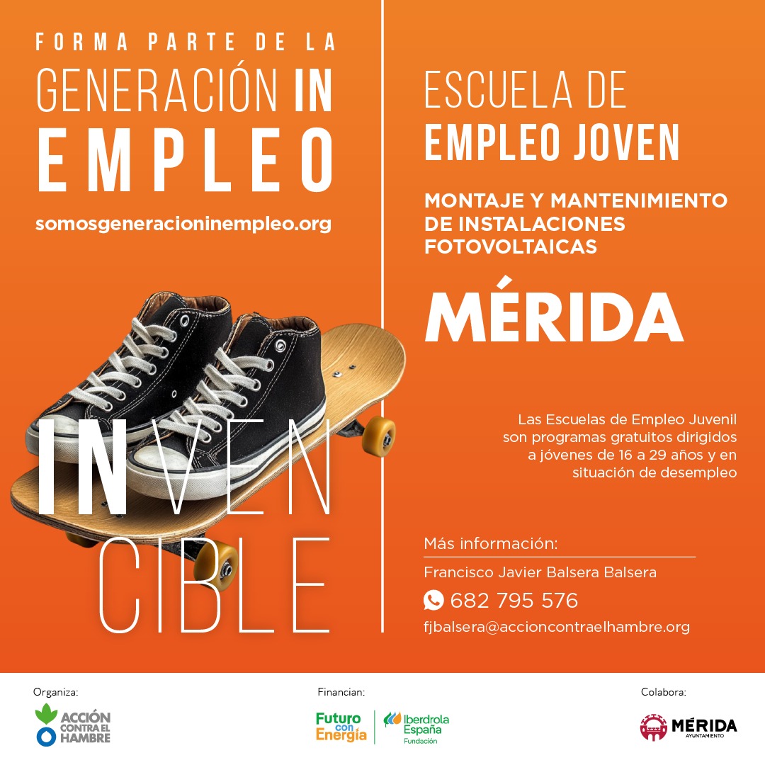 Generación IN Escuela de Empleo Joven es un programa gratuito de Acción contra el Hambre que ofrece formación, orientación e intermediación con empresas para impulsar la inserción laboral de jóvenes en desempleo, está financiado por Fundación Iberdrola y cuenta con la colaboración del Ayuntamiento de Mérida.