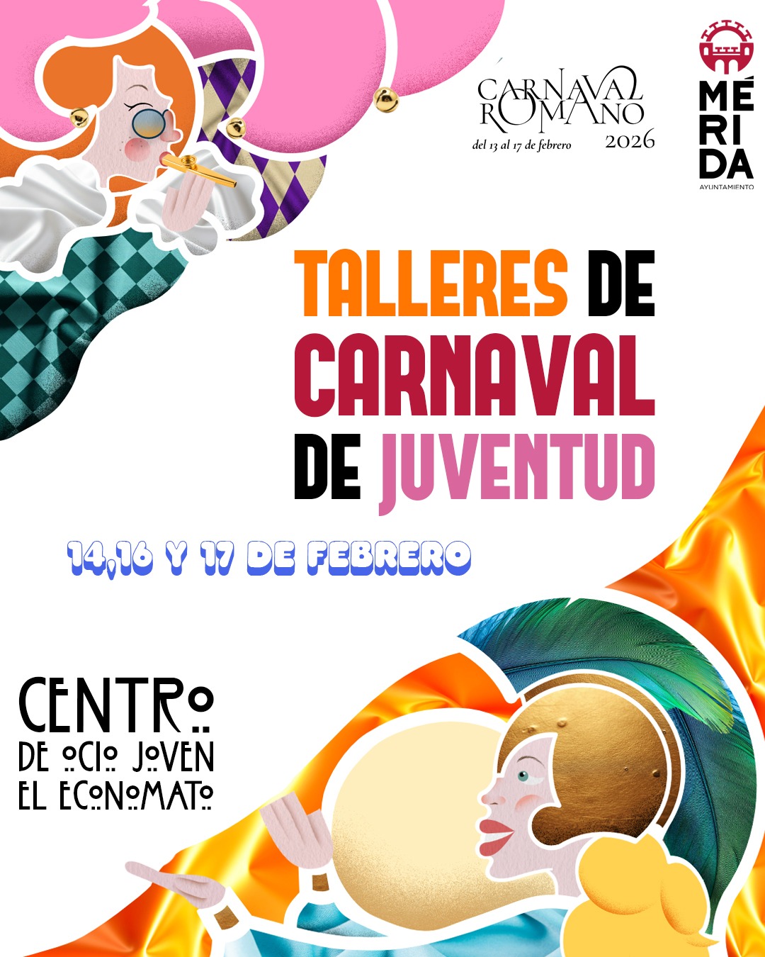 El Ayuntamiento de Mérida, a través de la Delegación de Juventud, ha abierto la inscripción para los Talleres de Carnaval, que se celebrarán los días 14, 16 y 17 de febrero en el Centro de Ocio Joven El Economato.