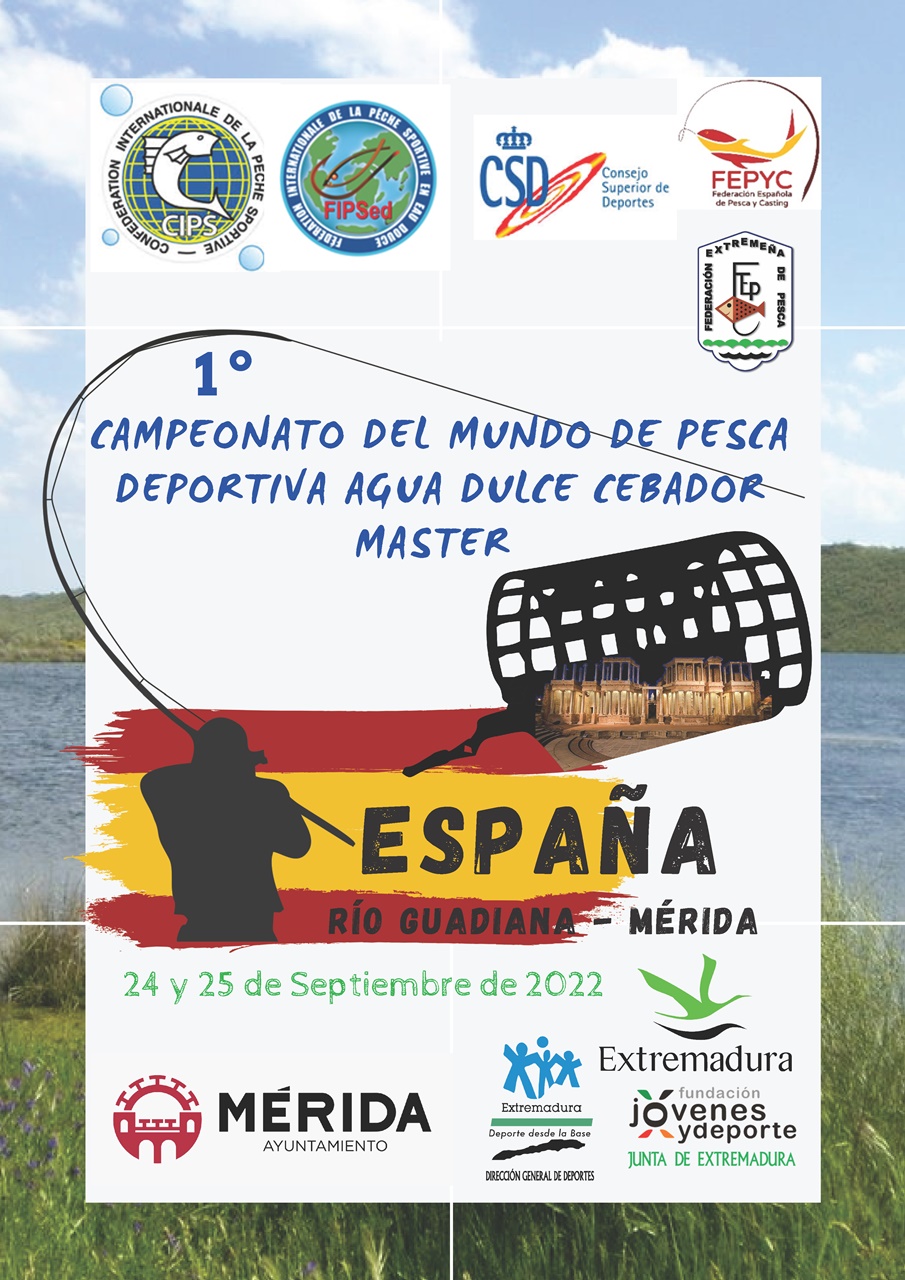 Mérida acoge el Campeonato del Mundo Agua-dulce Cebador Master, en el Río Guadiana, del 19 al 24 de Septiembre de 2022. Organiza la Federación Española de Pesca y Casting