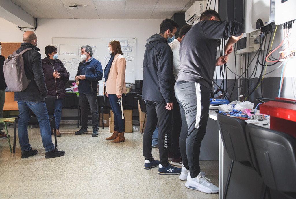 La delegada de Educación, Susana Fajardo, y el delegado de Formación y Empleo, Julio César Fuster, han visitado esta mañana el IES Emérita Augusta para conocer de primera mano el proyecto de implantación de paneles solares para autoconsumo que están llevando a cabo los alumnos del Ciclo Formativo de Eficiencia Energética y Energía Solar Térmica.