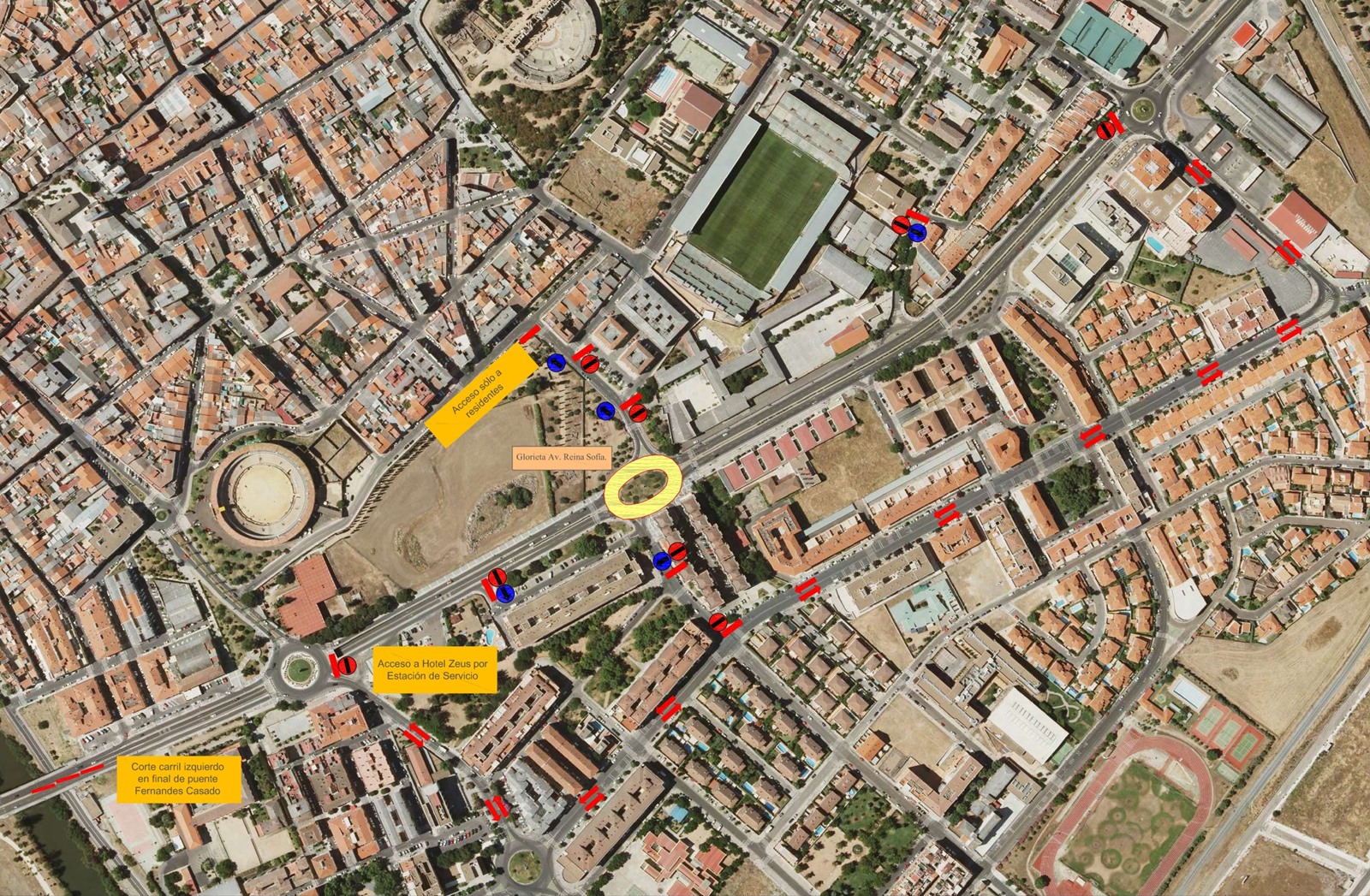 A la salida del Puente Fernández Casado se cortará el tráfico del carril izquierdo para dirigirlo a la Glorieta con Antonio Hernández Gil. El tráfico se canalizará por la Av. Lusitania. El acceso al Hotel Zeus se llevará a cabo por la Estación de Servicio.