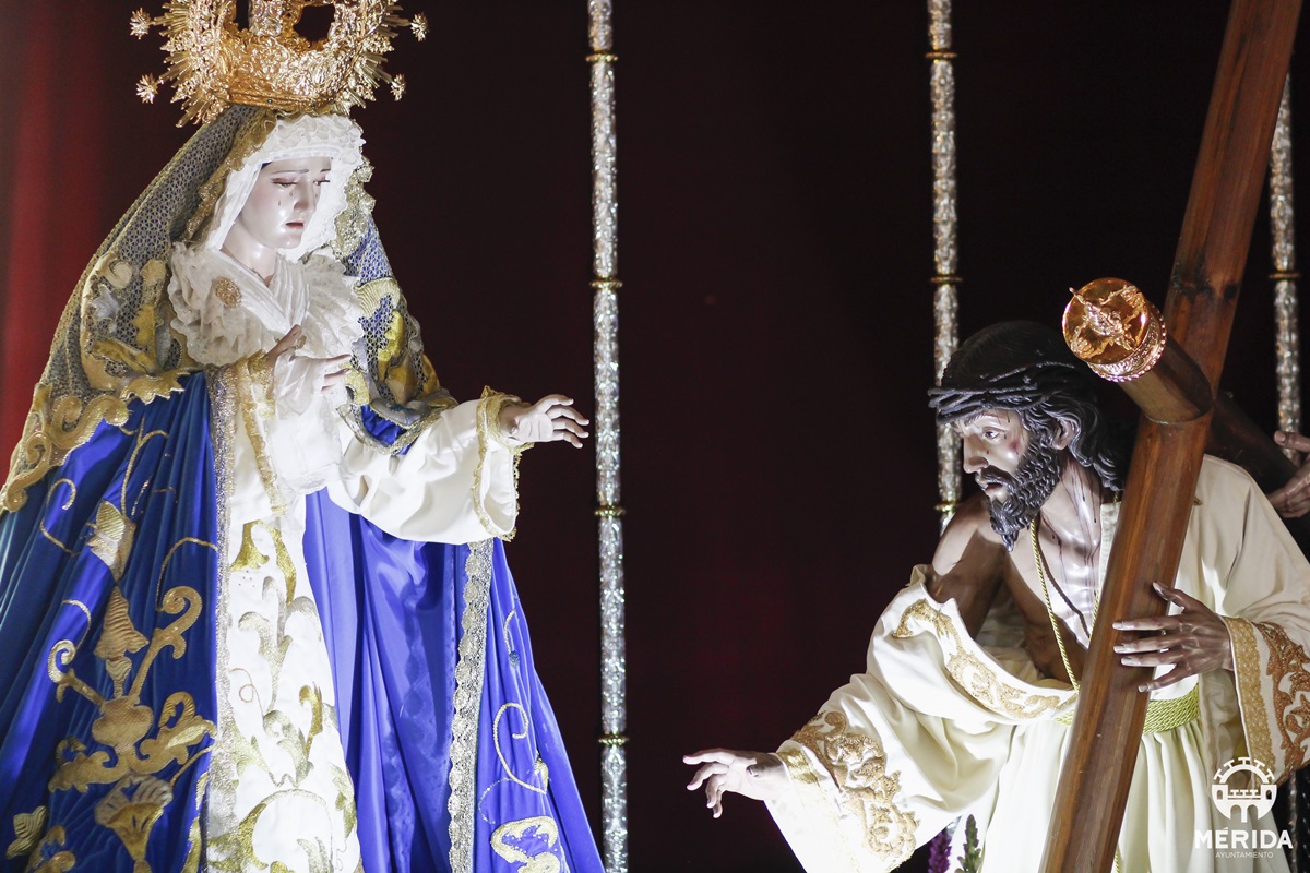 Desde la Basílica de Santa Eulalia sale la Cofradía de Nuestro Padre Jesús Nazareno, Santísimo Cristo de los Remedios y Nuestra Señora del Mayor Dolor con dos pasos a las 20.30 horas y con el itinerario siguiente. Jesús de Nazareno pasará por: Avenida de Extremadura Calle Almendralejo Calle Arzobispo Mausona Calle Camilo José Cela Calle Delgado Valencia Puerta de la Villa (Donde se encuentra con Nuestra Señora del Mayor Dolor). Nuestra Señora del Mayor Dolor pasará por: Avenida de Extremadura Rambla Mártir Santa Eulalia de la tarde Puerta de la Villa (Donde se encuentra con Jesús de Nazareno) 9 y cuarto de la noche Encuentro de los pasos en la Puerta de la Villa. Desde aquí El Nazareno y la Virgen pasarán por: Calle Santa Eulalia 10 y cuarto de la noche Concatedral Calle Santa Julia Calle Trajano Calle Alvarado Plaza de la Constitución 11 y cuarto de la noche Parador Nacional Calle San Francisco Calle Santa Eulalia Puerta de la Villa Rambla Mártir Santa Eulalia Avenida de Extremadura Entrada: 12 de la noche. Basílica Santa Eulalia