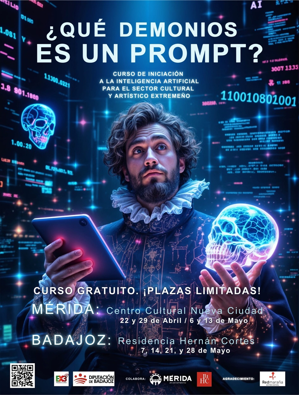 El curso es completamente gratuito gracias al apoyo del Área de Cultura de la Diputación de Badajoz. Las plazas son limitadas y las inscripciones ya están abiertas en https://ex3.es/curso-ia