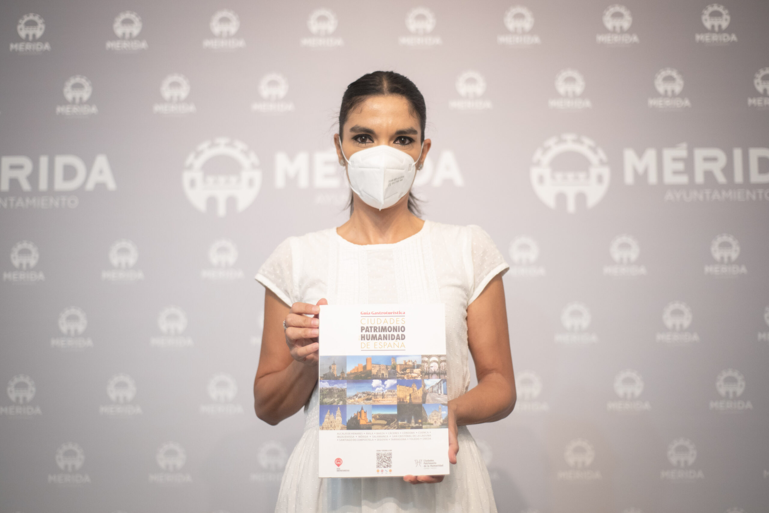 La delegada de Turismo, Pilar Amor, ha presentado la Guía gastroturística que ha editado el Grupo de Ciudades Patrimonio de la Humanidad. Una publicación que hace un recorrido visual y sensorial por la gastronomía de las 15 ciudades del GCPHE, además de por los eventos más relevantes de las mismas.